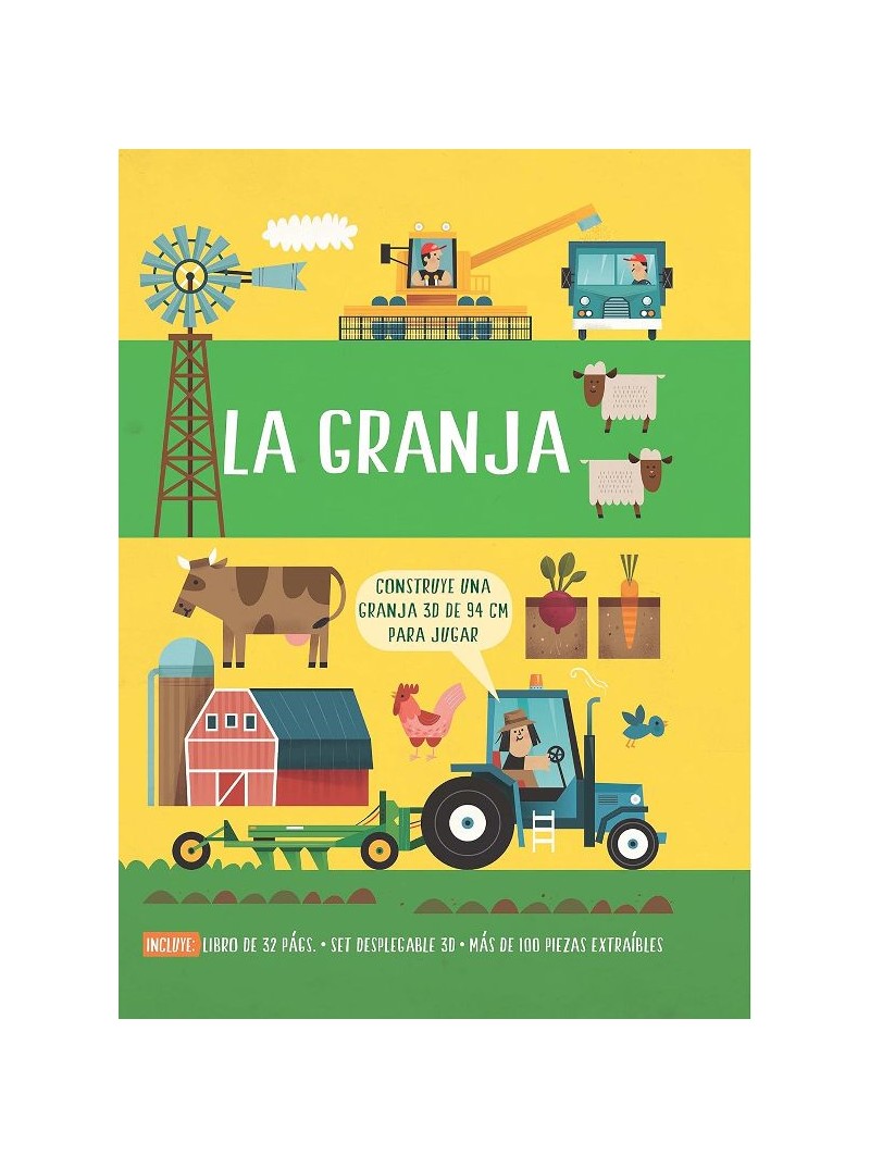 Monta la granja, construye la maquinaria, encaja las figuras, animales y cultivos ¡y estarás listo para ser un granjero! Con un fantástico libro repleto de datos curiosos, La Granja es perfecto para conocer cómo es la vida en una granja. Maqueta de tractor. La caja se despliega para revelar el interior de una granja. Piezas encajables para construir un camino. Maqueta de cosechadora combinada. Libro con datos curiosos de 32 páginas. Granjeros y accesorios con piezas extraíbles por presión para montar.
